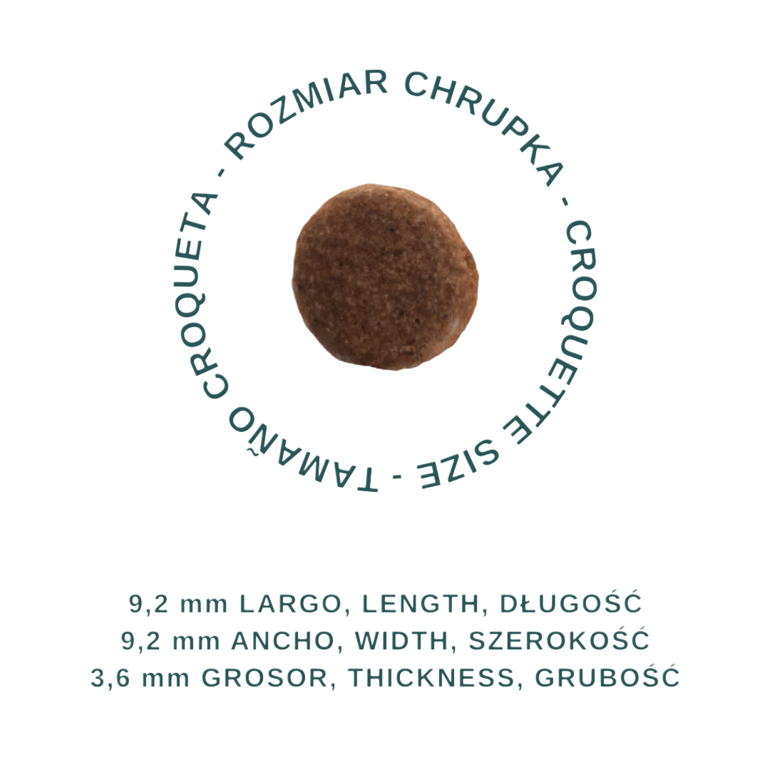 • Fundament dla Mocnych Kości: Precyzyjnie zbilansowany stosunek wapnia (1,2%) do fosforu (1%) jest absolutnie kluczowy dla harmonijnego i zdrowego rozwoju kośćca oraz zębów.